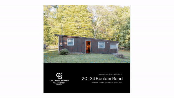 Bring your own vision to this special location! Set on a quiet country road just outside the Accord - Stone Ridge area, you'll find a sweet, livable 1-bedroom cabin (#20) that has been enjoyed by the current owners as a weekend retreat for the past 45 years. It has great energy and is surrounded by mature trees and stone walls along the back, with sunny, level lawns that are perfect for gardens, games or other outdoor pursuits. The 12X16 garden/work shed has elecricity and room to work and store tools etc. There is also a second small 2-bedroom house (#24) that had a fire some time ago and is now a shell ready for your imagination. It is wired for 200 Amps with a ground and box running under ground from the pole. Also has 1,000 gallon concrete septic tank and it's own well. Nice wood floors inside just need a bit of touching up. Towards the back of the property you'll find an old in-ground pool which could be filled in to make a nice garden area. There are many possibilities here - whether to live temporarily in #20 and fix up #24 as a studio or rental unit, fix and flip them both, or to live in one while you build something new (with appropriate town approvals). Many important features are already here: a drilled well, a functioning septic system, 100 Amp electric, newer hot water heater, gas-fueled stove and wall-hung heating unit, and an overall sense of natural beauty and calm that's hard to put a price on.